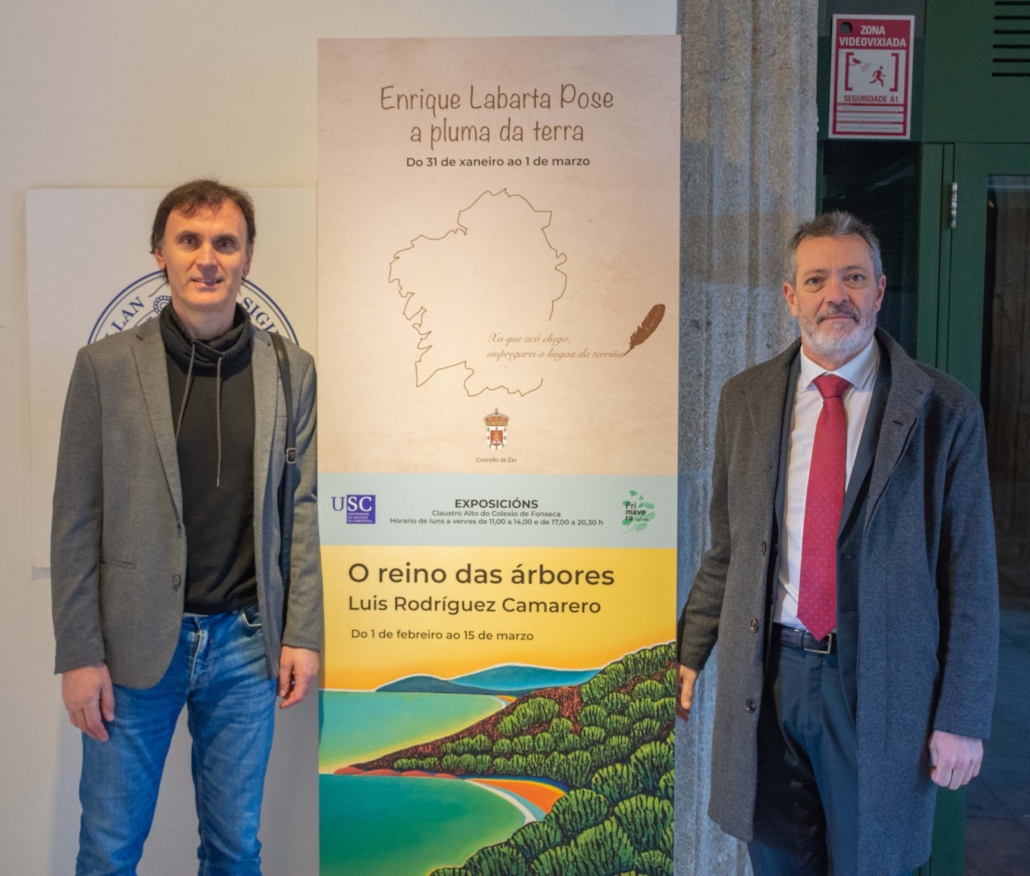 O Claustro Alto do Colexio de Fonseca, da Universidade de Santiago de Compostela, acolle ata o 1 de marzo a exposición «𝗘𝗻𝗿𝗶𝗾𝘂𝗲 𝗟𝗮𝗯𝗮𝗿𝘁𝗮 𝗣𝗼𝘀𝗲 𝗮 𝗽𝗹𝘂𝗺𝗮 𝗱𝗮 𝘁𝗲𝗿𝗿𝗮» na que, a través dos seus oito paneis con textos e fotografías, afóndase sobre a vida e a extensa obra de Enrique Labarta Pose. Esta é outra das accións que está a realizar o Concello de Zas para reivindicar a figura de Labarta e conseguir que se lle adique o seu propio Día das Letras Galegas