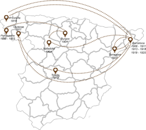 Ao longo da súa vida laboral foi ascendendo ata o posto de Xefe de Negociado de terceira clase da Inspección de Facenda da provincia de Barcelona. Viviu en distintas cidades desprazado por causas laborais.